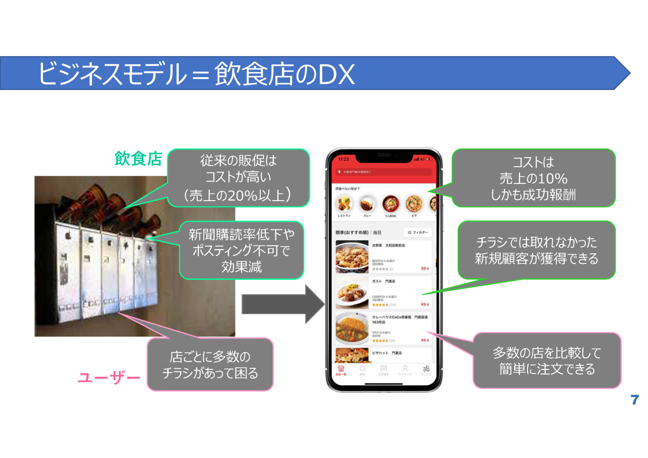 注文するお客様にとっても「邪魔なチラシが無くなって、お客様が好きな物を選びやすくなる」というメリットがあります。ビジネスは全員にメリットがなければ成り立ちません。出前館は素晴らしいビジネスモデルで、言わば「飲食業界のDX」とも言えます。