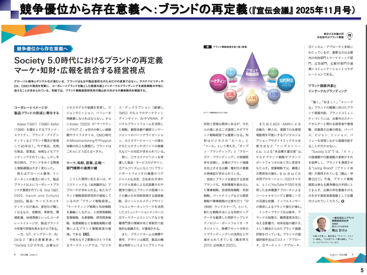 『宣伝会議』2025年11月号に、「競争優位から存在意義へ:ブランドの再定義」と題して、Society 5.0時代においてブランドを再定義する必要があるという内容の小論を発表しました。