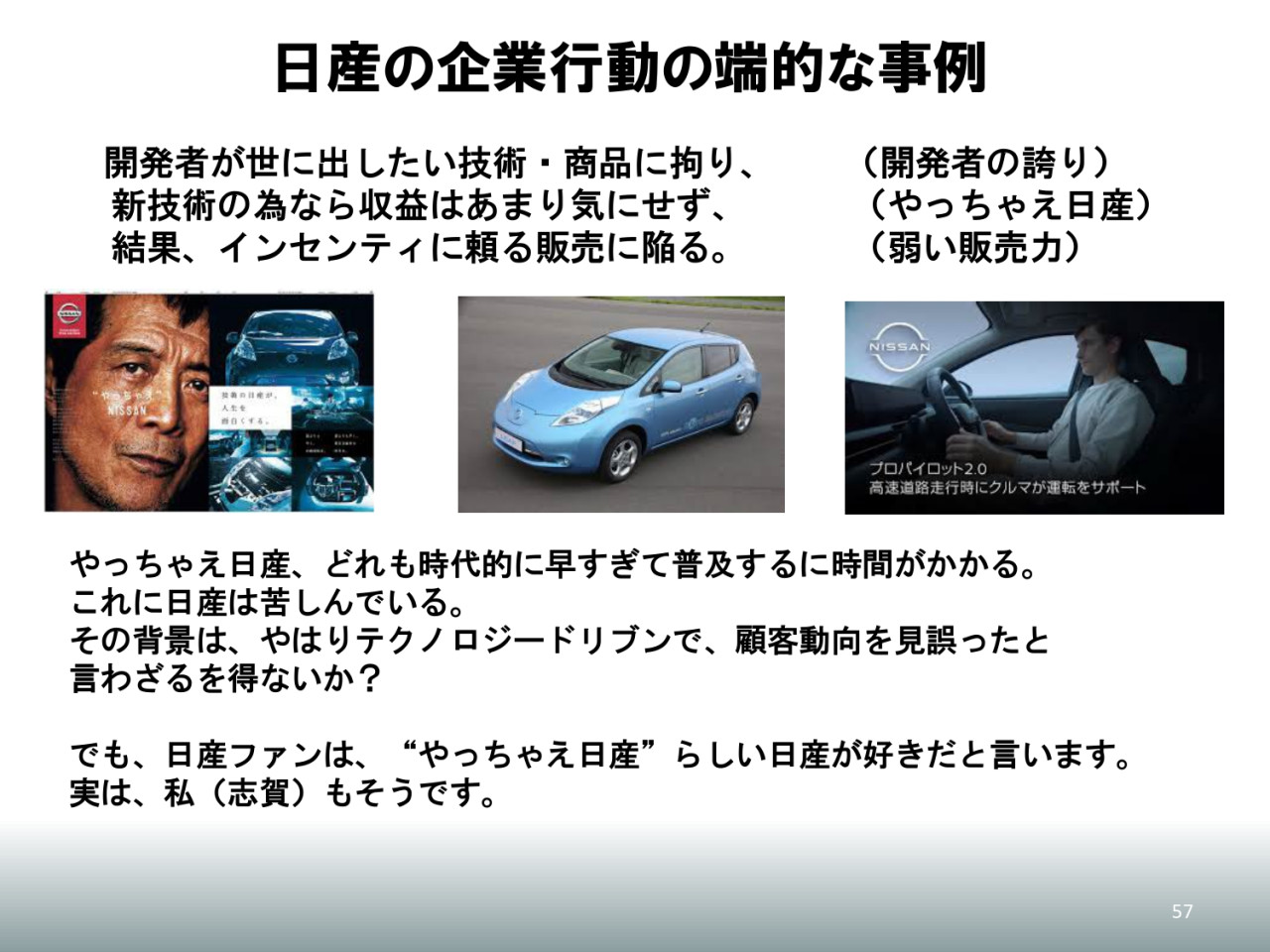 カルロス・ゴーン、本日の志賀講師の下で進められてきた「日産リバイバルプラン」(NRP)は、「利益ある成長」を実現するために、日産のブランド力を強化しようというものでした。